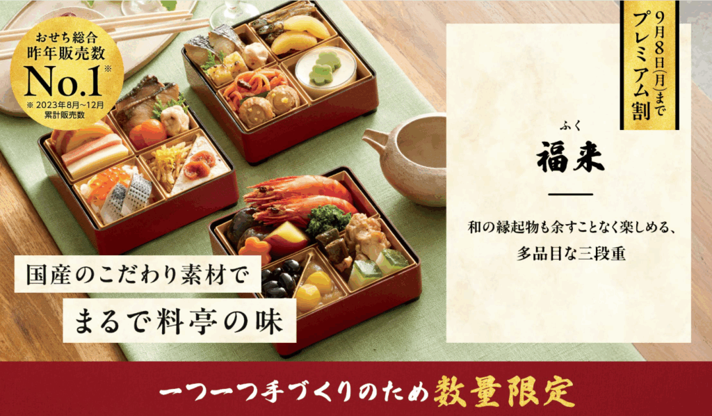 おせち料理専門店だからこそ実現できるリーズナブルな価格も魅力で、そのコストパフォーマンスの高さが評価され、累計販売数は269万セットにのぼります。