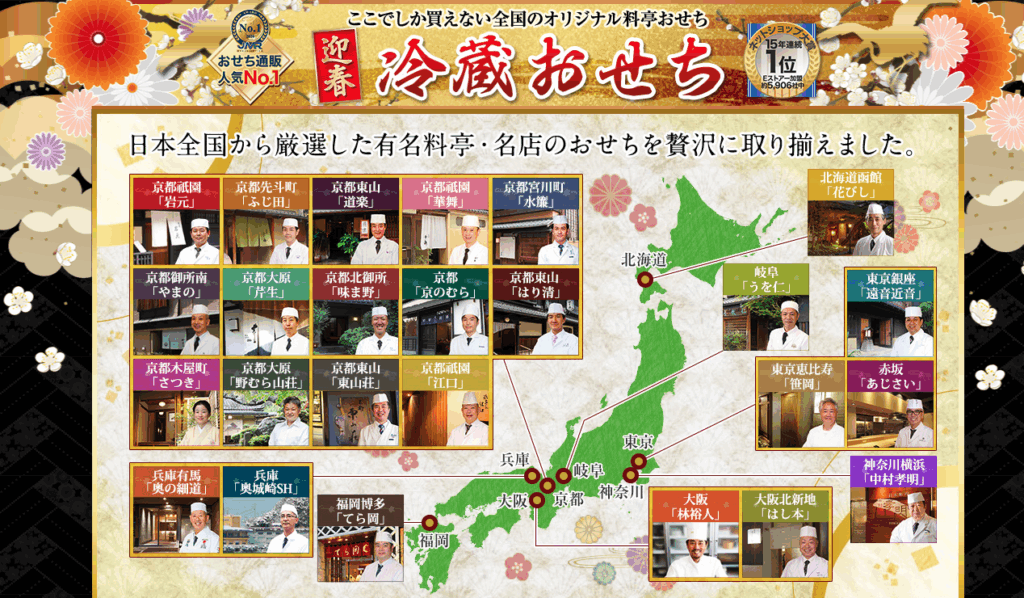 「全国の料亭・銘店監修」のおせちを取り扱っており、“味・安心”の両面で評価が高いです。