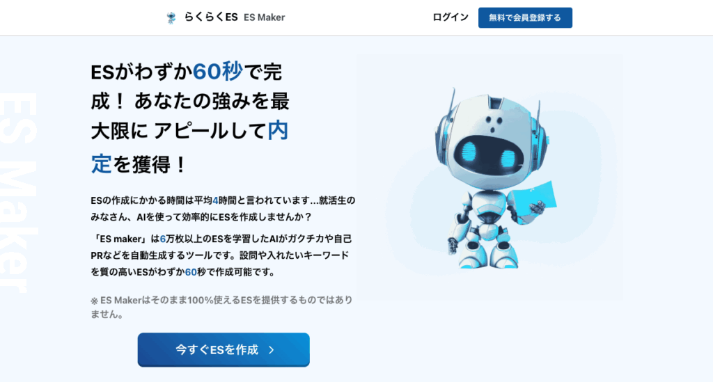 “60秒でES案が作れる”スピード特化。