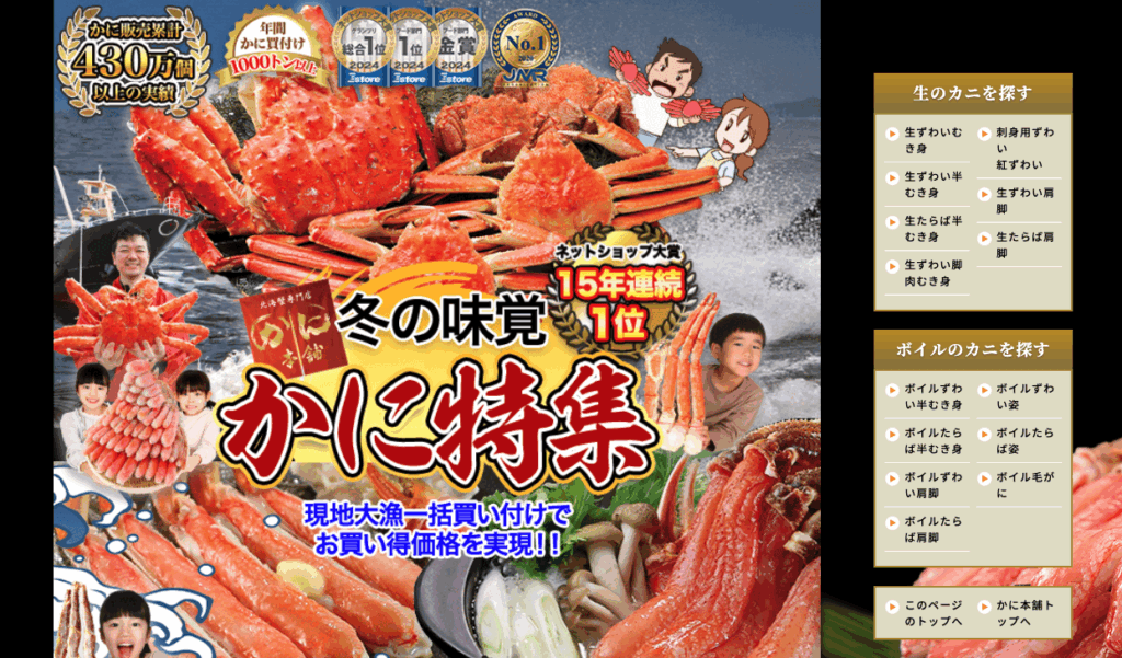 - 「とにかくボリューム重視」「コスパ優先」でカニを食べたい人には選びやすい通販サイト。