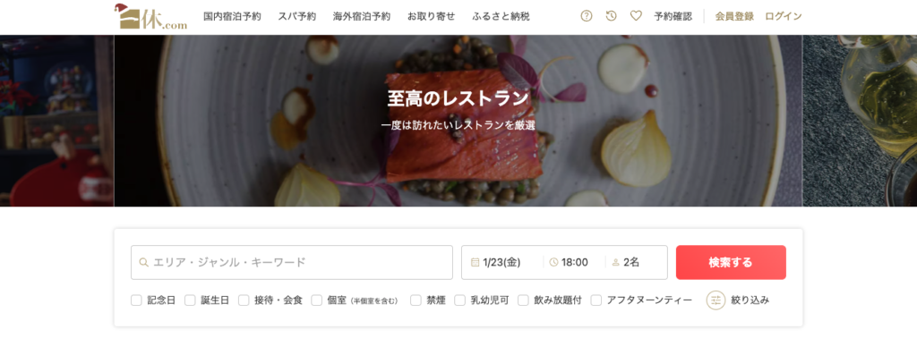 - 一休.comレストラン … 高級外食・記念日向け