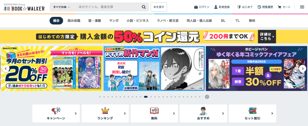 読み放題プラン「BOOK☆WALKER Magazine」や、コイン還元キャンペーンが定期的に開催されています。