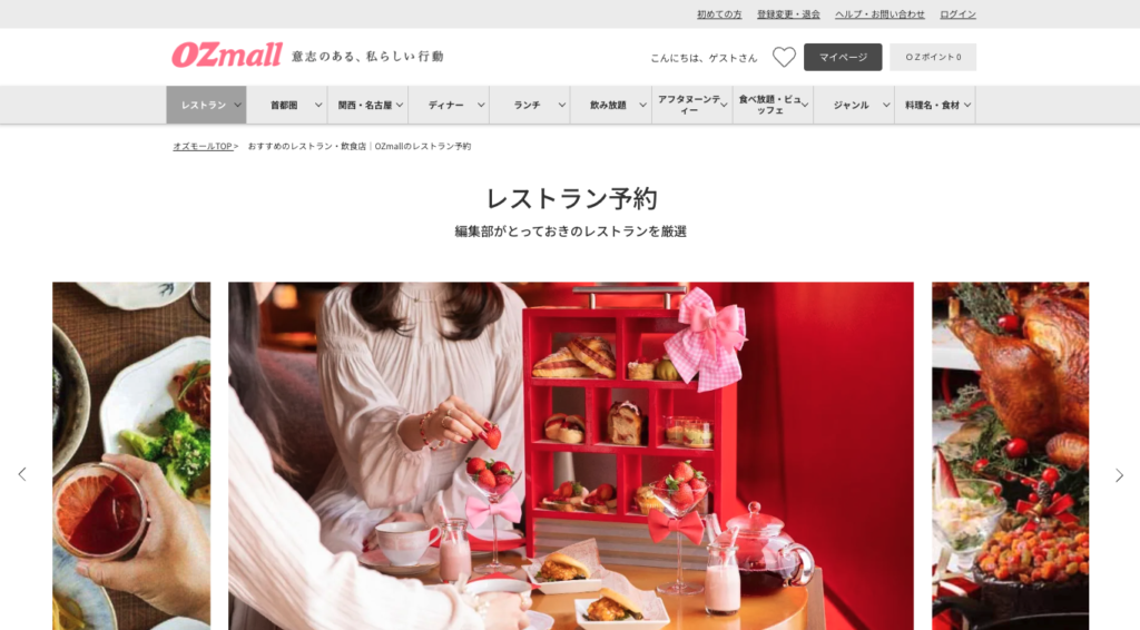 ホテルレストランや落ち着いた大人向けのお店が多いグルメ予約サイト。