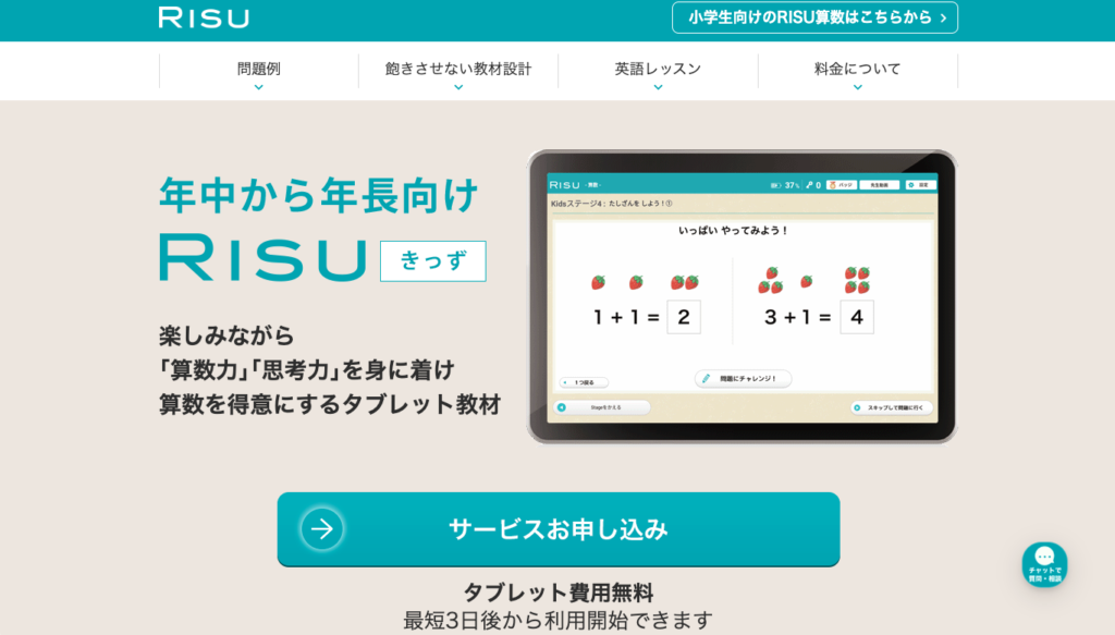 | RISU算数 | 算数特化 | タブレット | 低 | 算数を伸ばしたい/苦手を残したくない |