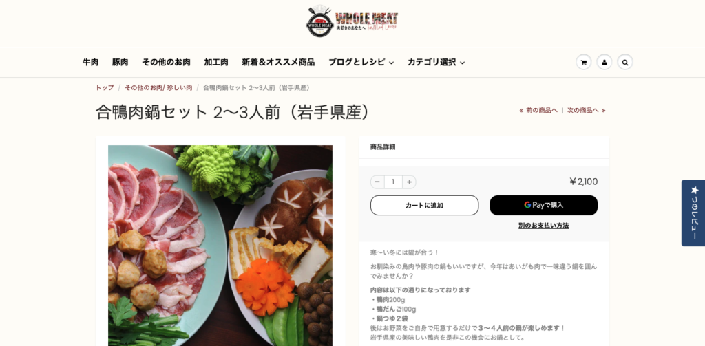 5. Whole Meat — 岩手鴨の本格鍋セット