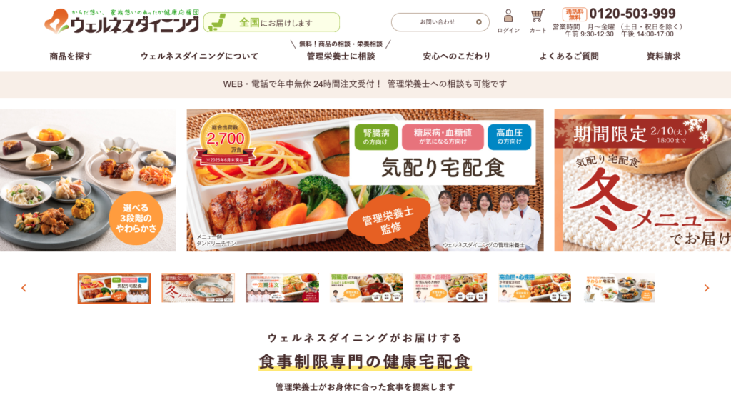 糖質制限・塩分制限・たんぱく調整など、健康状態に合わせた宅配食が選べるサービス。