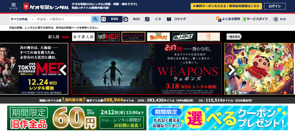 ゲオ宅配レンタル★★★★☆★★★★☆★★★★★コスパ・安心感