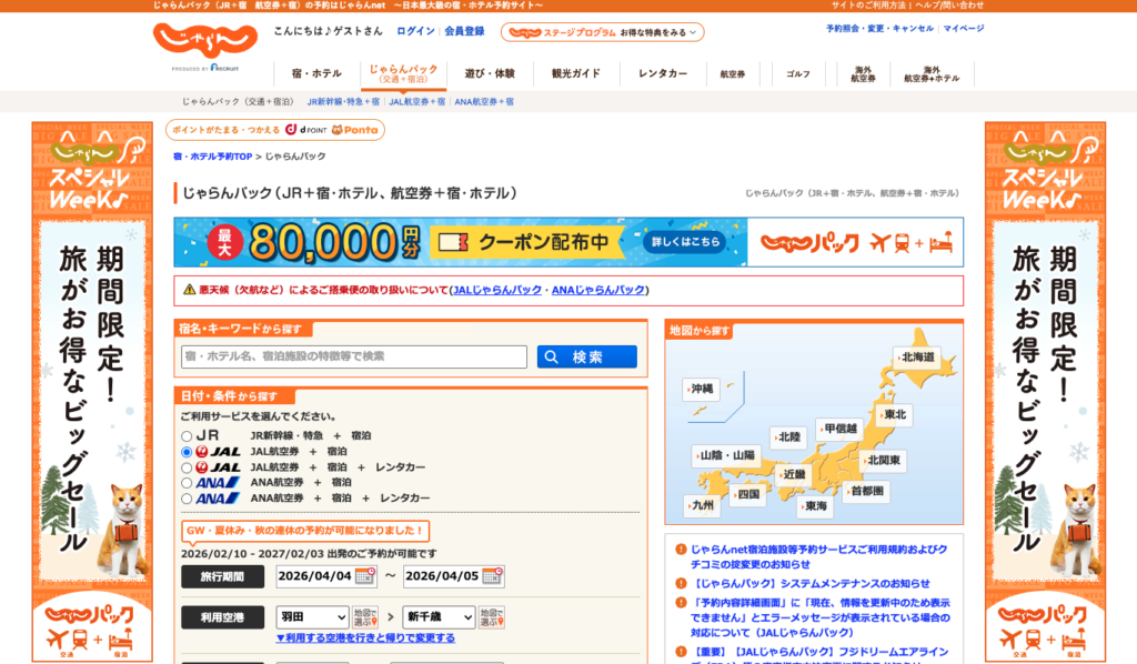 楽天やじゃらんは、時期によって大型クーポンが出ることがあります。