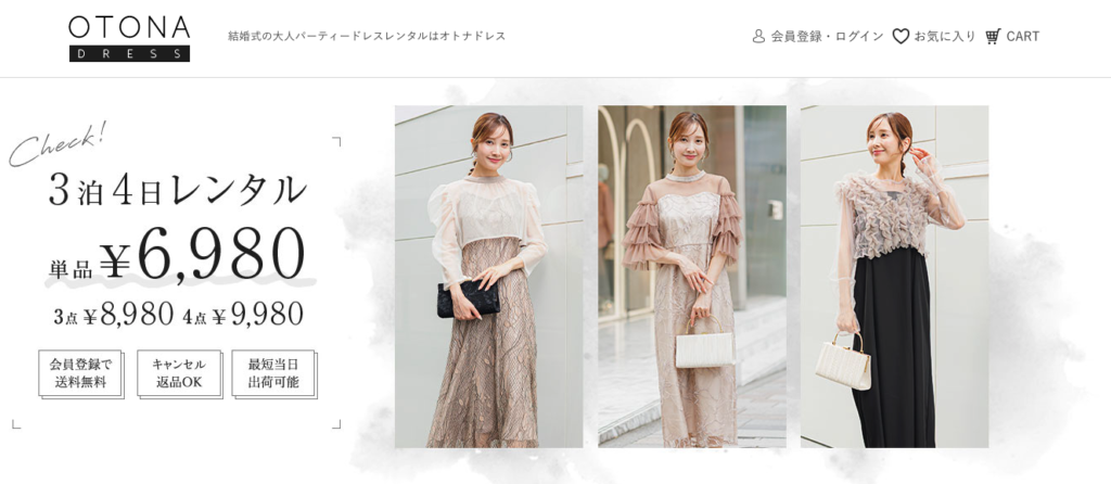 OTONA DRESSは、その名の通り落ち着いたデザインを好む大人女子向けのサービスです。