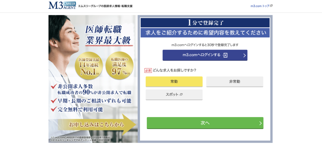 次いで「エムスリーキャリアエージェント」「マイナビDOCTOR」の3社を押さえておけば、医師の転職活動において大きな失敗はありません。