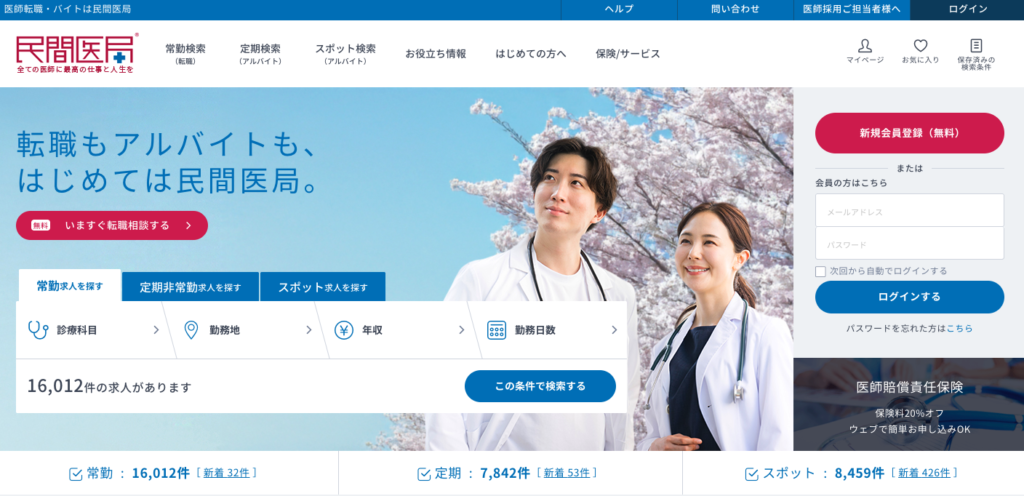 | 民間医局 | 約12,000件 | あり | 常勤・非常勤・スポット | 全国 | 公式サイト |
