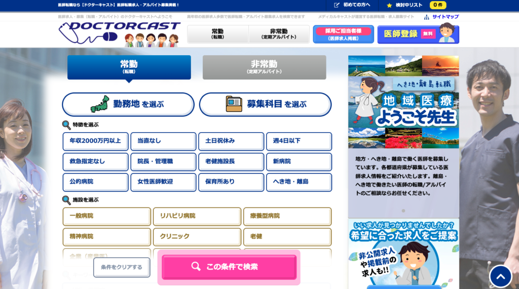 地方での勤務や、Uターン・Iターン転職を希望する先生には、「ドクターキャスト」が頼りになります。